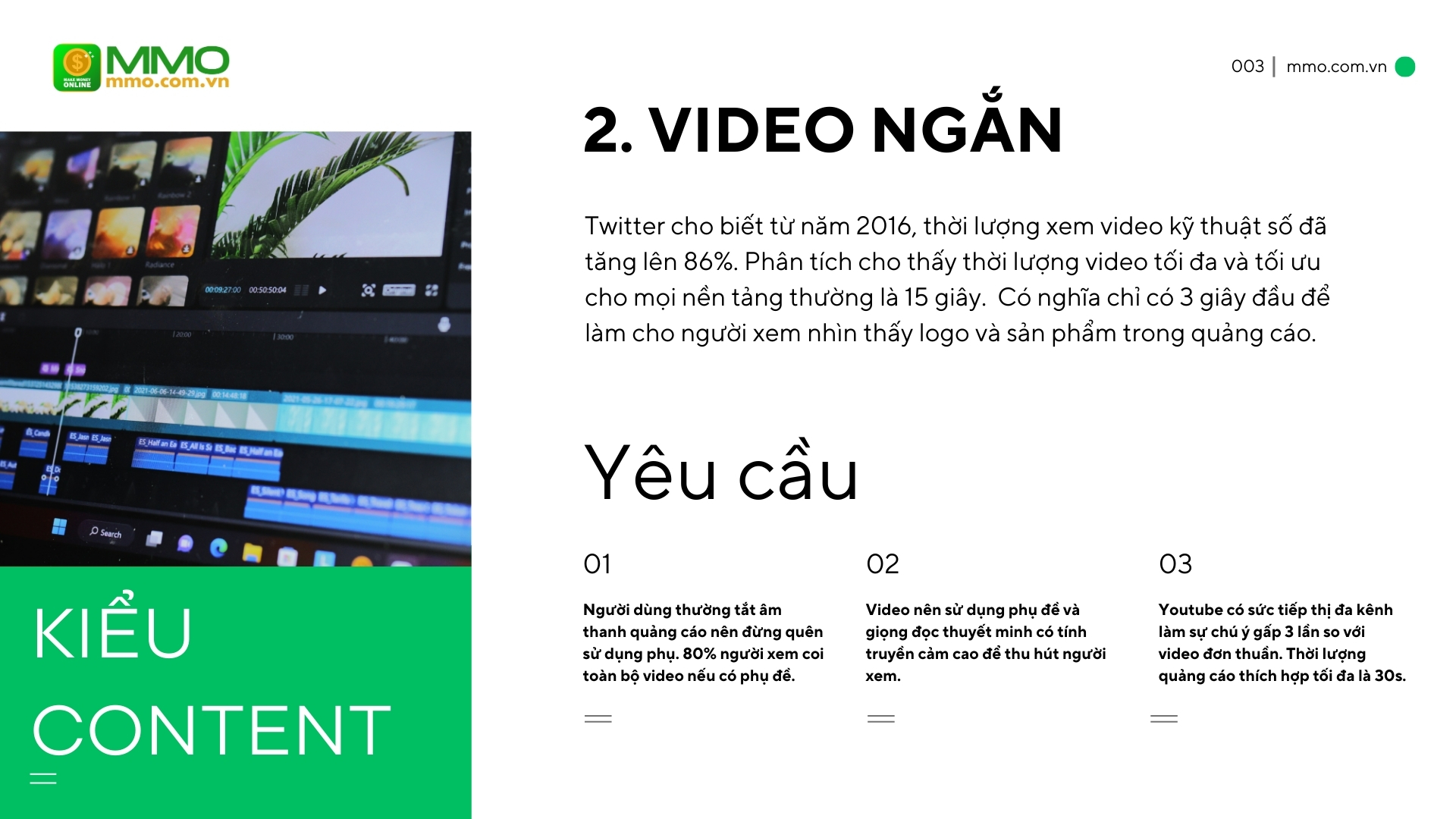 - Xây dựng những video dạng ngắn nhưng trọn vẹn thông tin, với thời lượng tối đa là 15 giây và với một số ngoại lệ như sau: